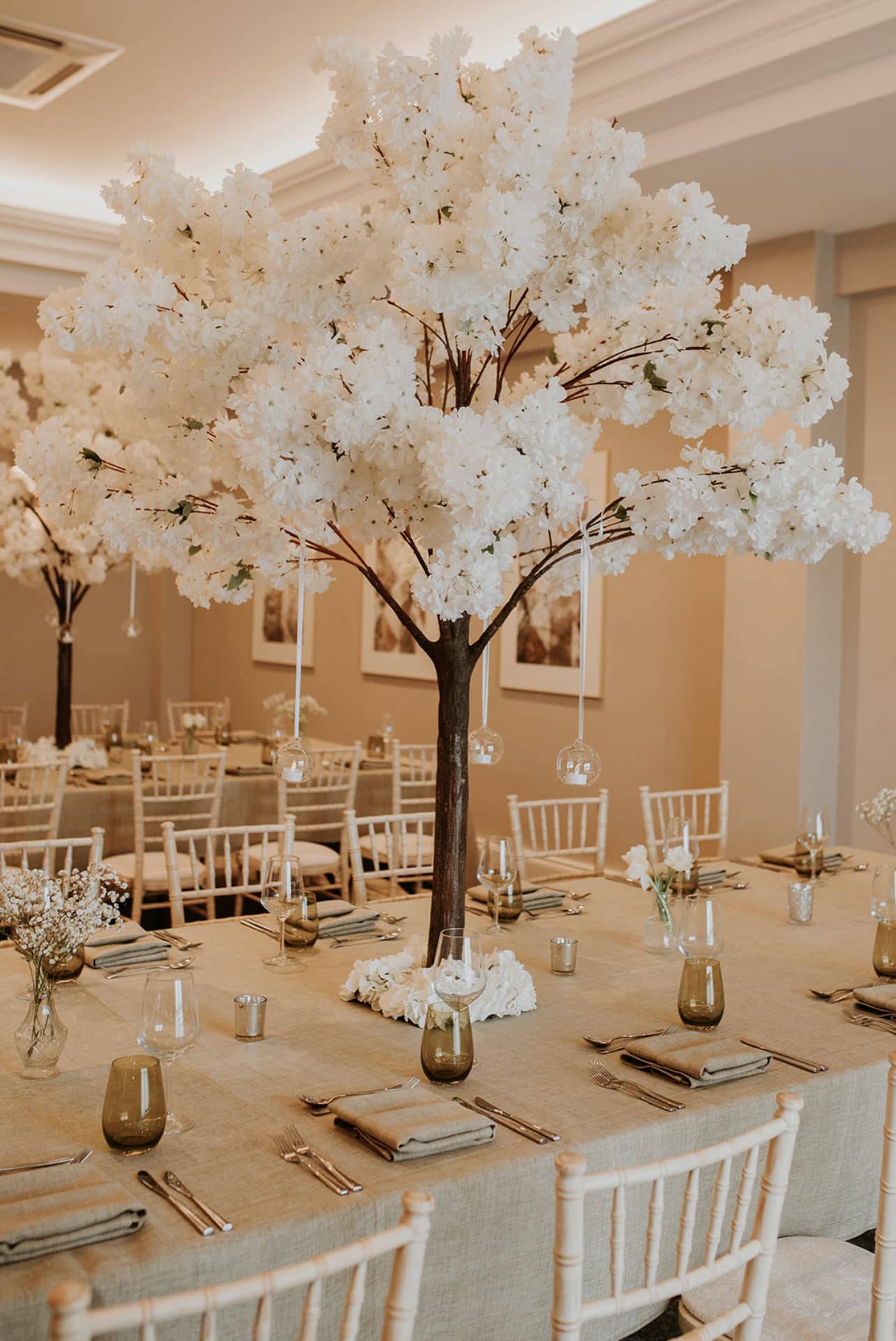 These stunning trees are bursting full of ivory blossoms. Standing at an impressive 1.8m tall they make a stunning statement centerpiece at your tables, or you could walk down the aisle under a canopy of blossom trees - the possibilities are endless.