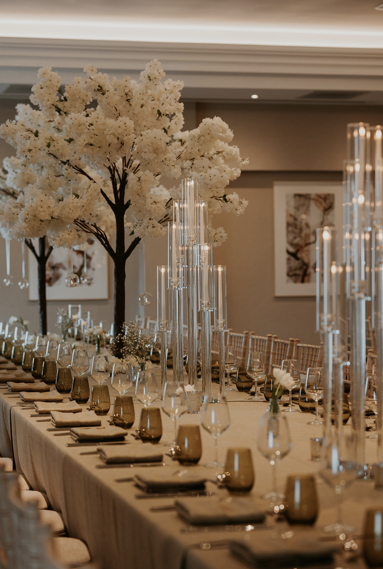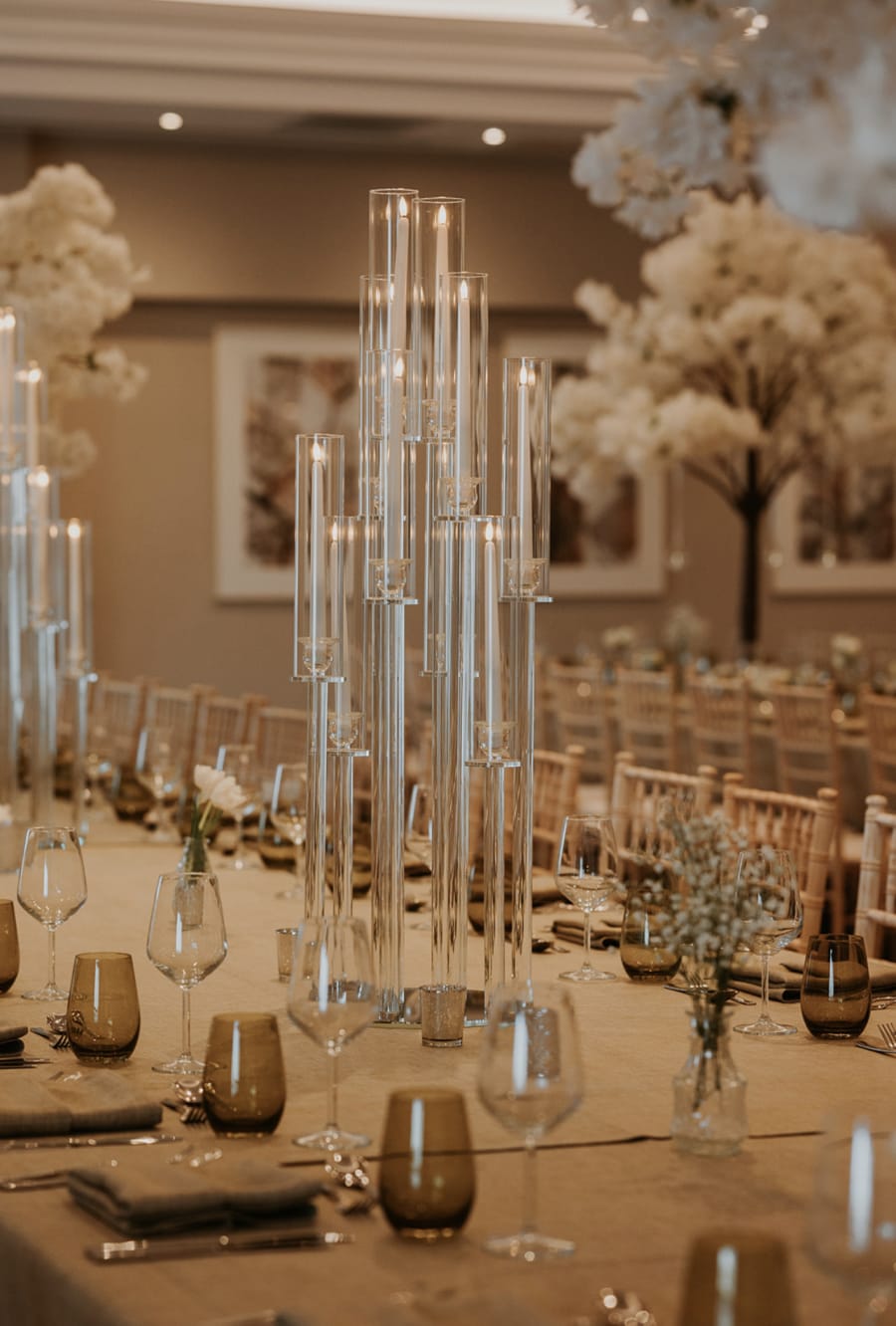 Hire these showstopper candelabras for your special event. Standing at an impressive 1.1meters tall, they certainly create a lasting impression. Timeless elegance is achieved with these beautiful pieces. They are ideal to mix and match centerpieces - adding a visual feast for your reception. They can also be used on a plinth as aisle decor for your ceremony. The possibilities are endless.